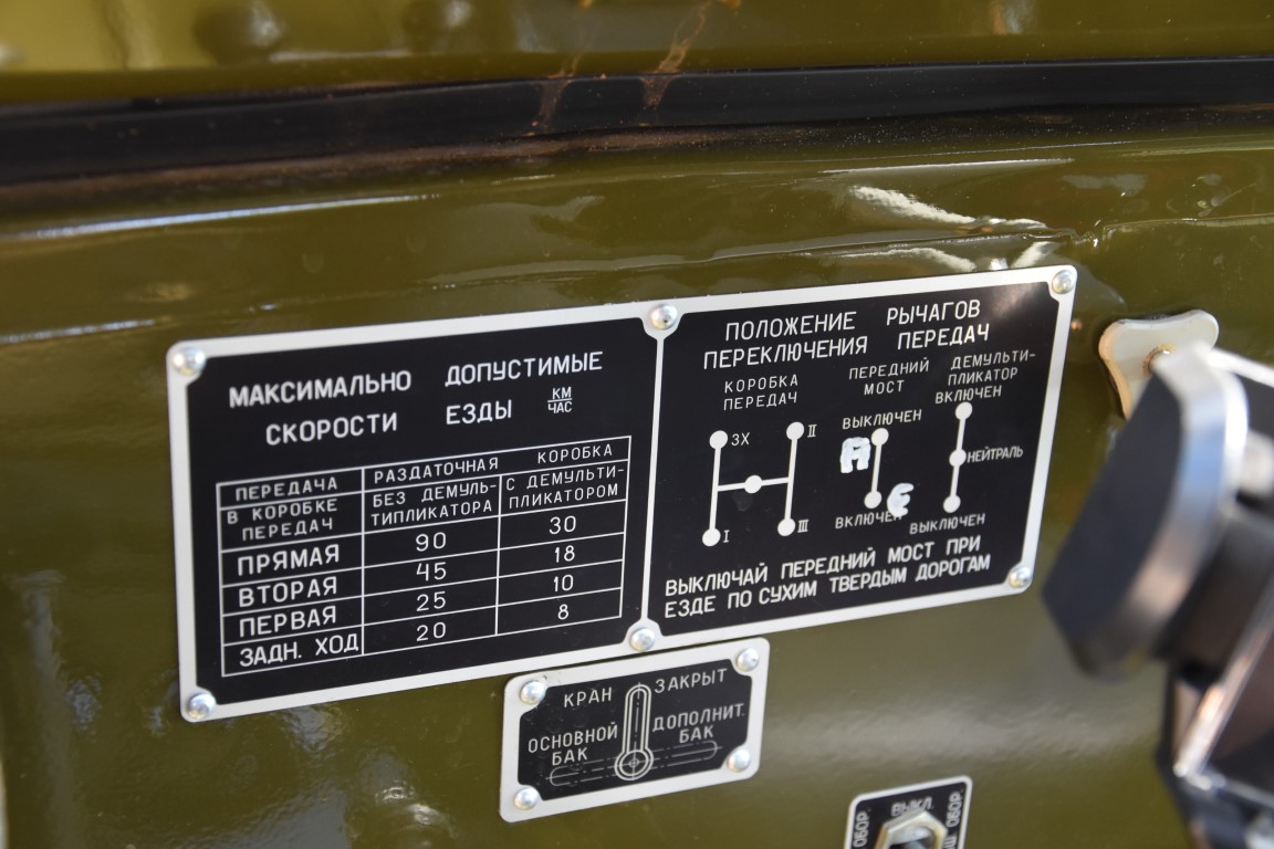 Dieser im Kundenauftrag zum Verkauf stehende GAZ-69 aus dem Jahre 1963 ist die Variante UAZ-69M, was bedeutet, dass dieses Fahrzeug ein 2-türiger GAZ-69 mit dem leistungsstärkeren 2.4-Liter-Motor ist, welcher im rumänischen ARO-Werk gefertigt wurde. Dieser Geländewagen wurde in der frühen Vergangenheit aufwendig restauriert und seitdem lediglich 365 km gefahren. Im Zuge der Restauration wurde die Karosserie im typischen Oliv komplett neu lackiert und ein neues Verdeck aufgezogen. Der Innenraum wurde ebenfalls komplett in Wagenfarbe neu lackiert, sowie die Sitze und Sitzbänke mit neuem Kunstleder bezogen. Zusätzlich wurden sämtliche Fahrwerkskomponenten erneuert oder aufgearbeitet sowie sämtliche Verschleißteile ersetzt. Der Motorlauf, das 3-Gang-Getriebe, Untersetzung und Allradantrieb funktionieren tadellos und laden zum fahren in der Wildnis ein. Zusatzinstrumente wie, Wassertemperatur-Anzeige, Öldruck-Anzeige und Bordspannungs-Anzeige sind ebenfalls voll funktionsfähig. Da das Fahrzeug bereits in Deutschland als Oldtimer angemeldet war, sind bereits alle Dokumente zur einfachen Zulassung vorhanden.
